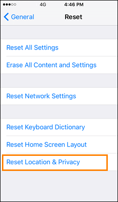 - Choose Reset Location & Privacy.