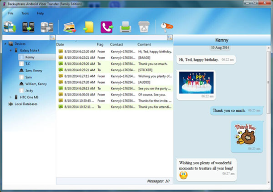 2. Backup Viber using Android Viber Transfer. Backuptrans Android Viber Transfer provides a convenient way to backup and restores your Android Viber messages on the computer. Just connect your Android phone to a computer and run this Android Viber Transfer software. All your Viber chat messages with attachments like pictures, videos, audios can be backed up and restored easily.