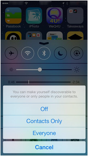 2. Tap “AirDrop” on the Control Center and select “Contacts Only”(if the recipient is a contact) or “Everyone” from the options;