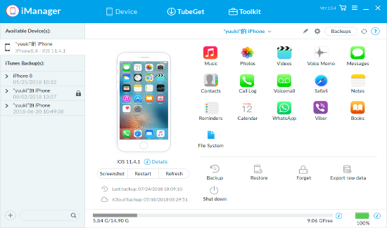 - Step 1: Open Gihosoft iManager, connect your iOS device to computer or choose an iTunes backup.