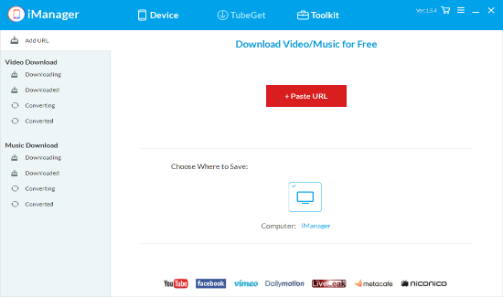 Gihosoft iManager has the powerful TubeGet built inside, which allows you to easily download any music audio or online videos from famous websites like YouTube, Facebook, Vimeo, Niconico, etc.